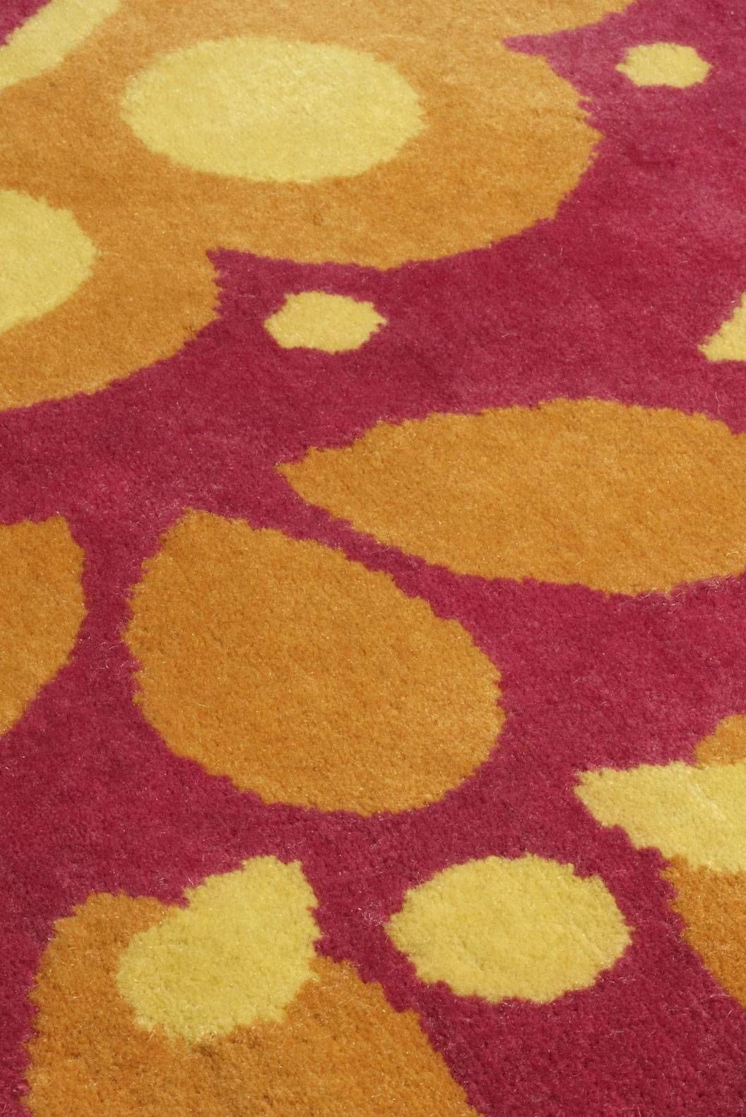 Custom made hand knotted New Zealand wool design available in four sizes. Option shown is 2.44m (8') Diameter.