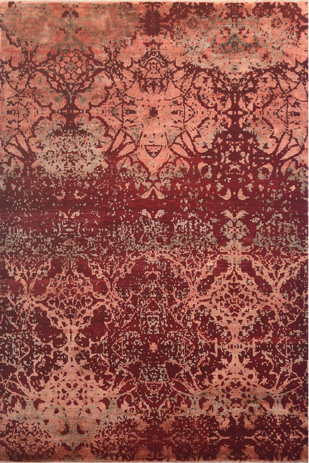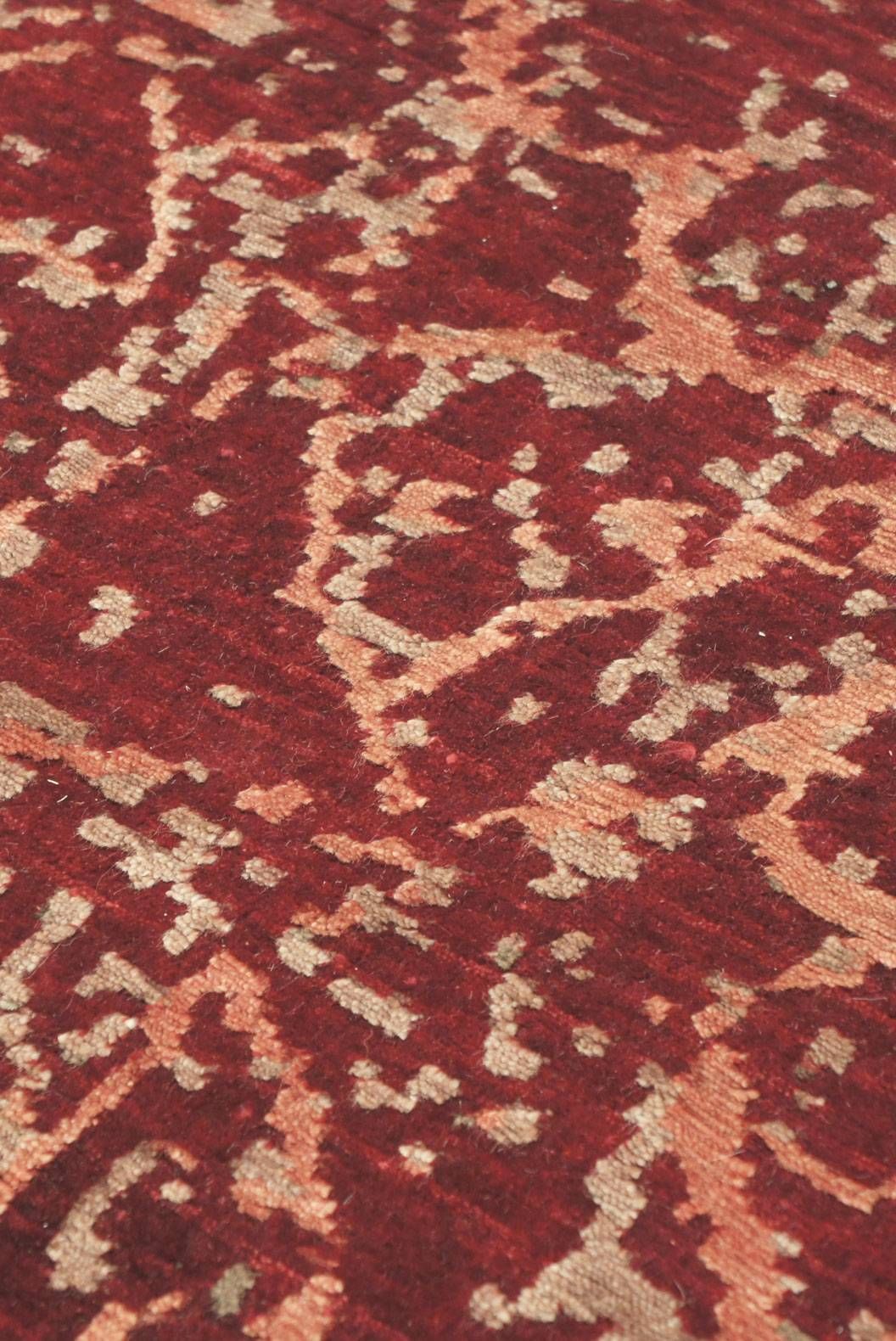Custom made hand knotted New Zealand wool and bamboo silk design available in five sizes. Option shown is 274cm x 183cm (9' x 6')